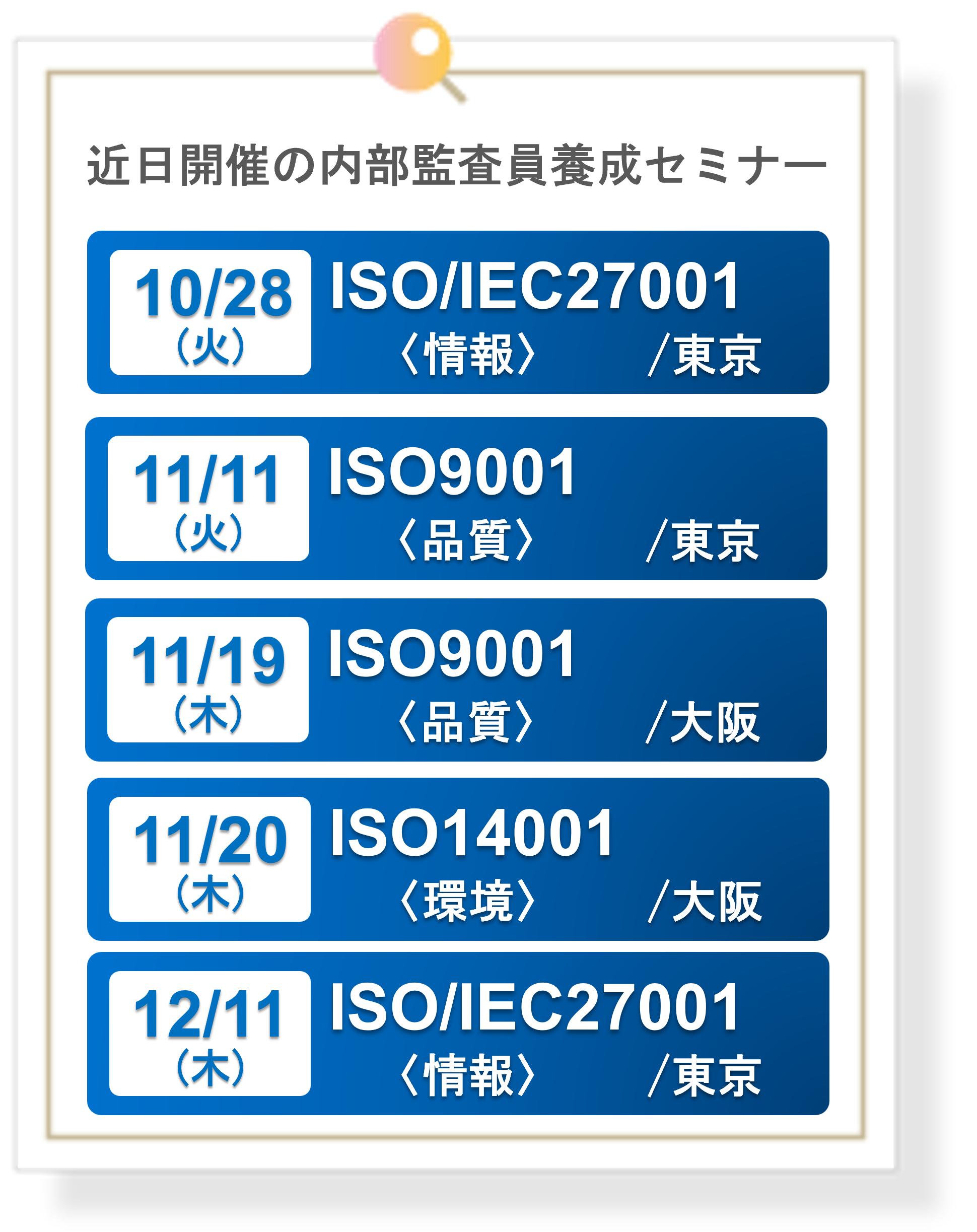 内部監査員の養成にも活用できる講座も複数ございますので、是非ご確認ください。